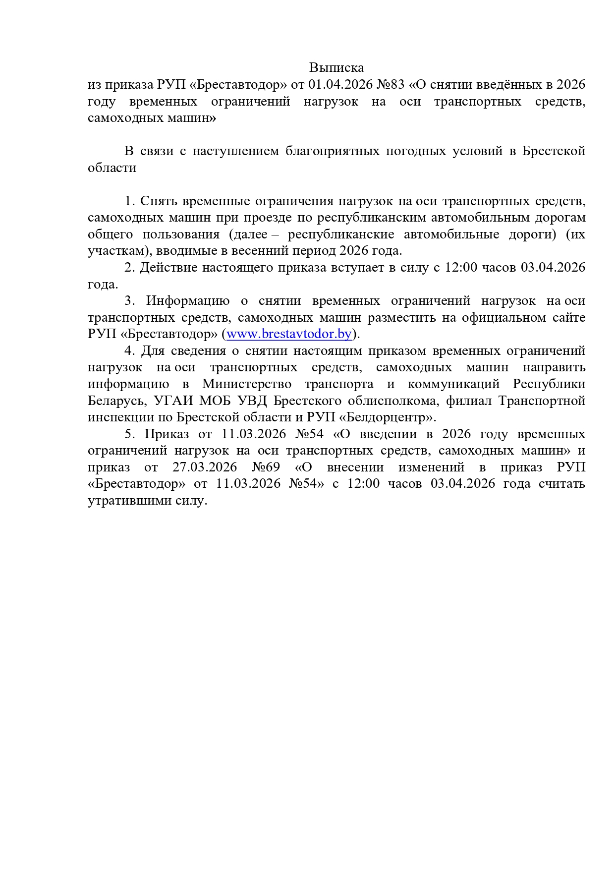 О снятии введенных 2026 году временных ограничений нагрузок на оси транспортных средств, самоходных машин Назад